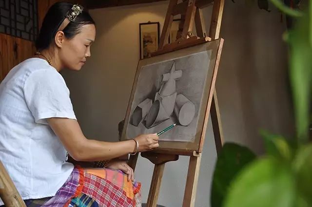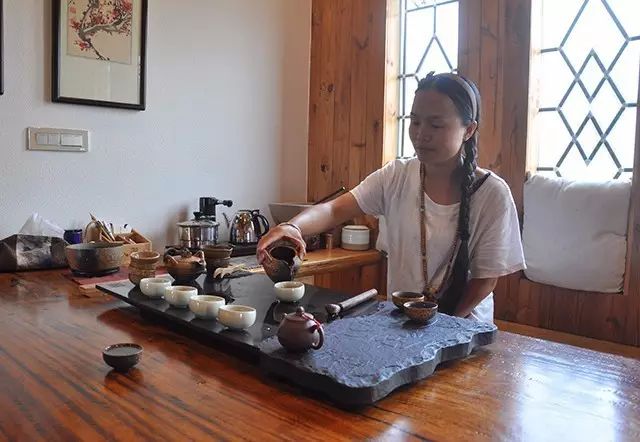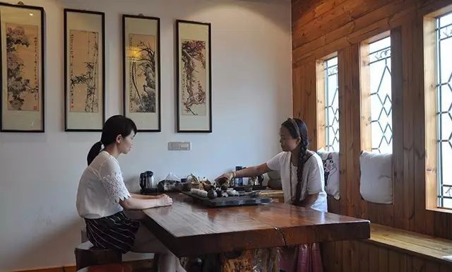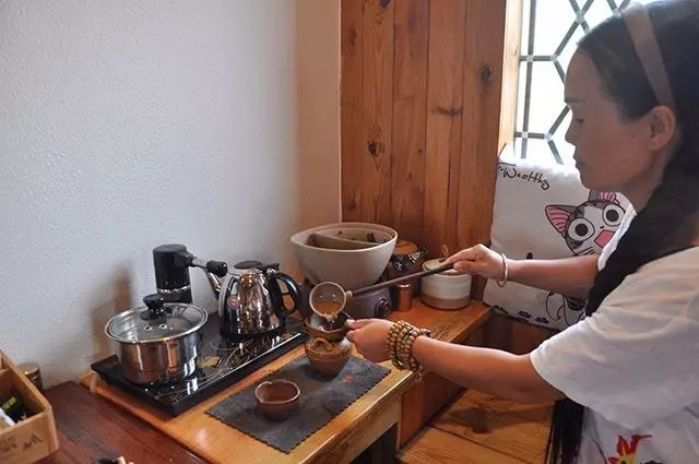 休閑時(shí)間,欣賞老板娘畫(huà)素描,為我們泡茶