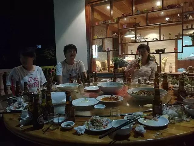 玩到5:30,我們盡興的回到民宿,洗好下樓,6點(diǎn)老板娘已經(jīng)準(zhǔn)備好兩桌豐盛的晚餐了,因?yàn)橥盹L(fēng)吹著很舒服,我們建議坐在院子里吃飯,以海鮮和當(dāng)?shù)靥厣藶橹?,因?yàn)樘I,味道太好,來(lái)不及拍照,在這樣的夜幕下,吹著海風(fēng),吃著海鮮,喝著老板娘特供的進(jìn)口啤酒,似乎城市與工作相關(guān)的世事紛擾都已經(jīng)不再了,剩下的就是享受生活的美好……